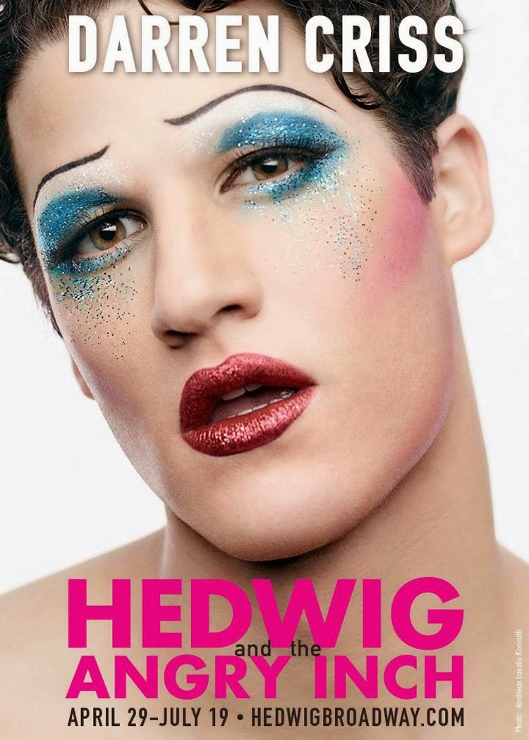 Pouco antes de Glee acabar, Darren Criss anunciou em sua página oficial do Facebook que ele seria o novo protagonista do musical da Broadway ‘Hedwig – Rock, Amor e Traição’. Agora, ele divulgou a primeira imagem promocional do musical. Na foto, ele está na pele da cantora transgênero alemã vocalista da banda de rock ‘Hedwig’.