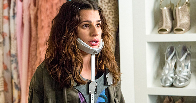 Lea Michele acabou de gravar Glee há pouco tempo e já entrou em uma nova série. De Ryan Murphy, Brad Falchuk e Ian Brennan, mesmos criadores de Glee, Scream Queens começou na última-terça feira. A série traz Lea como Hester (ou Colar Cervical), que é um pouco estranha e tem uma intensa fascinação com a morte.