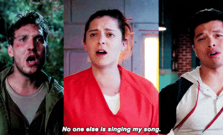 O enredo de Rebecca, de Josh e de Nathaniel (que achei o mais fraco do episódio) nos levam à música “No One Else Is Singing My Song”. Os três cantam, cada um num lugar diferente, que ninguém os entende. Mas a música nos ensina que a gente pode pensar que estamos sozinhos em nossa vida, que não temos ninguém ao nosso lado e que ninguém nos entende (que ninguém “canta a nossa música”), mas que sempre há pessoas dispostas a caminhar/cantar com você. Essa música já virou uma das minhas preferidas de toda a série!