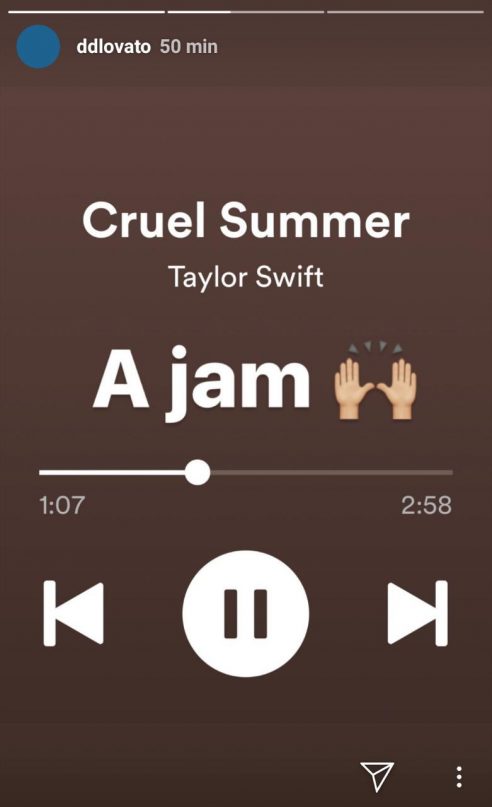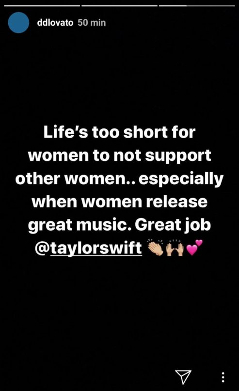 Demi afirmou que “Cruel Summer” é um hino e elogiou Taylor. “A vida é muito curta para mulheres não darem apoio a outras mulheres, especialmente quando elas lançam ótimas músicas. Bom trabalho, Taylor”, escreveu a cantora em seu Instagram Stories.