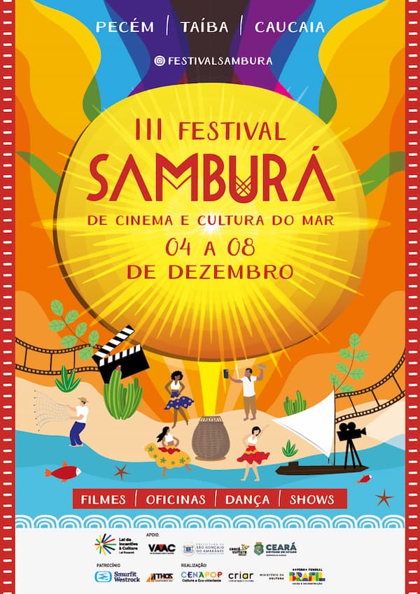 A 3ª edição do FESTIVAL SAMBURÁ DE CINEMA E CULTURA DO MAR anuncia a seleção oficial de curtas-metragens deste ano. Entre os dias 4 a 8 de dezembro no distrito de Pecém, São Gonçalo do Amarante, no litoral de Ceará, será realizada a mostra de curtas-metragens.
